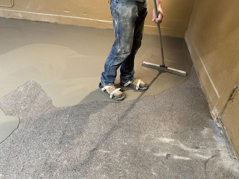 Self leveling concrete floors, polishable self leveling Floors, concrete repair through self leveling, concrete designed for prepping substrate for new flooring, and driveway and sidewalk resurfacing
